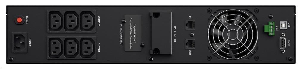 | Dodávka zahŕňa | UPS, rackové koľajnice (L+P), stojanové svorky, sériový kábel x 1, Kábel USB x 1, používateľská príručka x 1, Softvér na správu UPS na CD x 1, Sprievodca nastavením funkcií x 1, prepojovací kábel IEC C13-C14 x2, montážna súprava (skrutky, podložky) |