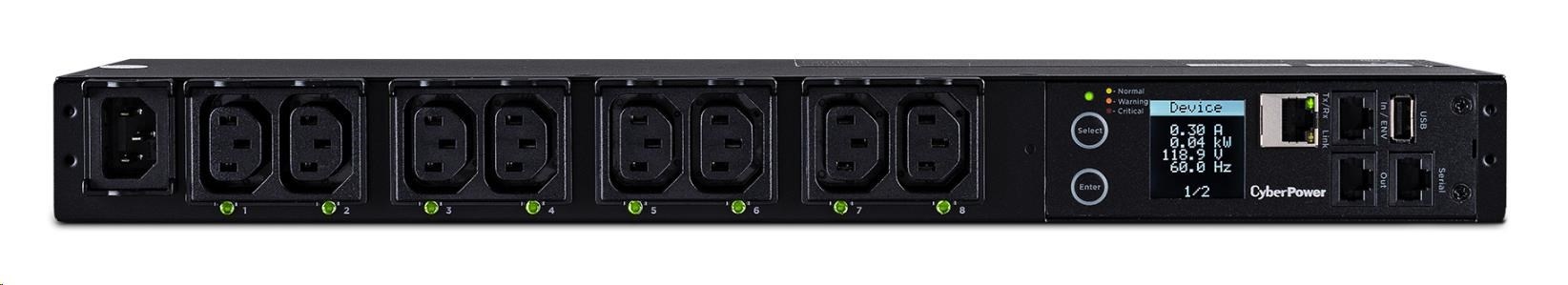 CyberPower Rack PDU, prepínaná, 1U, 10A, (8)C13, IEC-320 C14