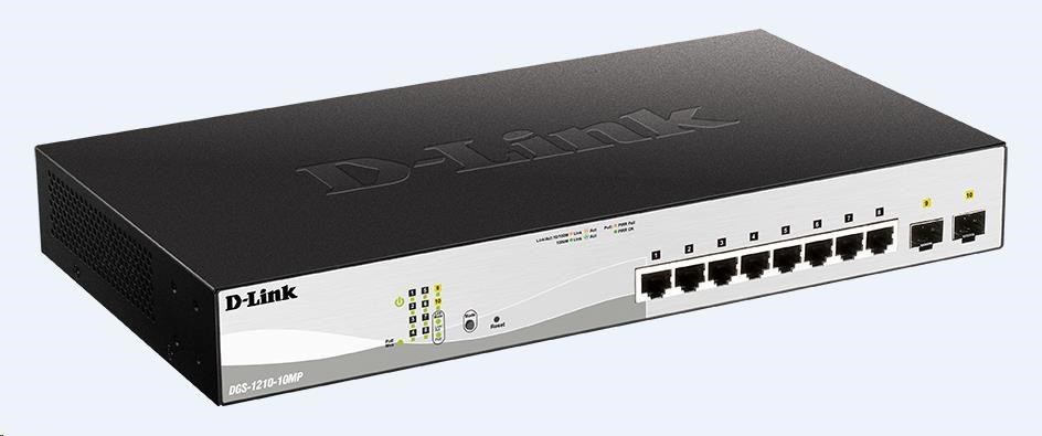 D-Link DGS-1210-10MP 10-portový gigabitový Smart+ PoE switch, 8x GbE PoE+, 2x SFP, PoE 130W, bez ventilátora