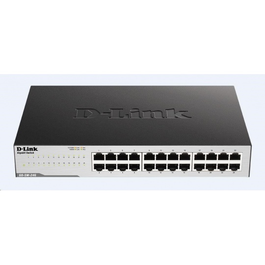 - 16 alebo 24 gigabitových portov LAN na vysokorýchlostné káblové pripojenie - Pohodlná inštalácia Plug-and-play Spoľahlivosť - Zabudovaná 4 kV prepäťová ochrana na všetkých portoch Gigabit Ethernet - Odolné kovové puzdro - Možnosť montáže do stojana - Bezventilátorová konštrukcia Energeticky úsporný a ekologický - Znižuje napájanie portu, keď nie je prevádzka - Optimalizuje spotrebu energie portu na základe dĺžky pripojeného kábla - Energeticky úsporná konštrukcia znižuje produkované teplo a umožňuje tichý chod prepínača 24-portový GIGABIT EASY DESKTOP SWITCH - 24-portový gigabitový prepínač - Auto MDI.MDIZ crossover pre všetky porty - Full/half-duplex pre rýchlosti Ethernet / Fast Ethernet - Plug-and-play inštalácia - Energy Star Level V kvalifikácia - D-Link Green (automatické vypnutie nepoužívaných portov) - Interný univerzálny napájací zdroj s napájacím káblom - Kovové puzdro, čierna farba, stolová a stojanová montáž (gumové nožičky a sada pre stojanovú montáž sú súčasťou balenia), 1 HE..