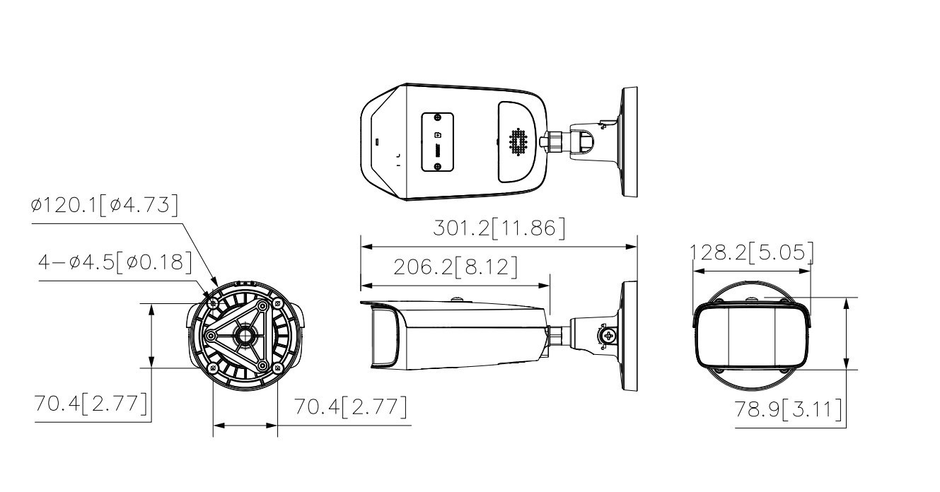 Výstupy max. 8 MP (4096 × 1800) @ 25 fps. Kodek H.265, vysoká miera kompresie, veľmi nízka bitová rýchlosť. Zabudované teplé svetlo a maximálna svetelná vzdialenosť je 40 m. ROI, SMART H.264+/H.265+, AI H.264/H.265, flexibilné kódovanie, použiteľné pre rôzne šírky pásma a úložné prostredia. WDR, 3D NR, HLC, BLC, digitálny vodoznak, použiteľný pre rôzne monitorovacie scény. Detekcia abnormalít: Detekcia pohybu, manipulácia s videom, zmena scény, detekcia zvuku, žiadna SD karta, plná SD karta, chyba SD karty, odpojenie siete, konflikt IP, nelegálny prístup a detekcia napätia. Alarm: 1 vstup, 1 výstup; Zvuk: 1 vstup, 1 výstup; podporuje max. 512G Micro SD kartu, vstavaný mikrofón a reproduktor, podporu obojsmerného hovoru. Napájanie 12 VDC/PoE. Krytie IP67. Inteligentné monitorovanie: Vniknutie, vypínač, tepelná mapa a počítanie ľudí. EPTZ: Zväčšenie a sledovanie inteligentných poplachových cieľov. SMD 4.0. Široký uhol záberu 180°..