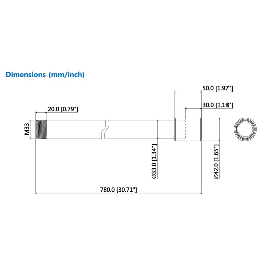 | Dimenzia | 42 mm x 780 mm (1,65" x 30,71") |