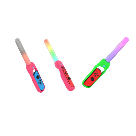 Súprava Dance 'N' Play obsahuje 2x zvukovo citlivé LED svetelné tyčinky s ružovou a zelenou rukoväťou a remienkami na zápästie. Zvukovo citlivé LED svetelné tyčinky s viacfarebným efektom dúhového podsvietenia budú pracovať, pulzovať, svietiť a tancovať na akýkoľvek zvuk. Či už ide o hudbu alebo zvuky hier, súprava Dance 'N' Play rozžiari vašu izbu.
