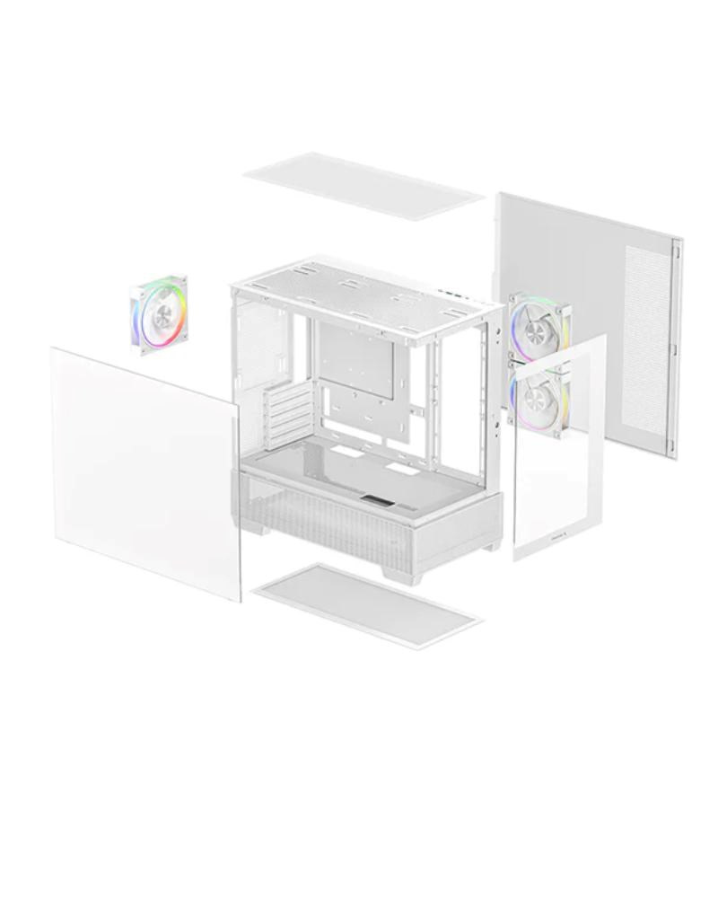 DEEPCOOL Case CG380 3F WH, mATX, ARGB, Průhledná bočnice, 3x120mm Fan, bílá