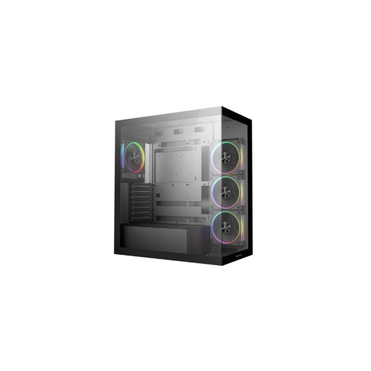 Konstrukce bez středového sloupku spolu s bočním a předním skleněným panelem poskytuje 270° pohled na vnitřní komponenty, takže si můžete svou sestavu plně vychutnat.