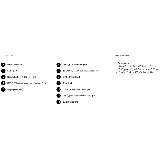 • 1 USB-C 5Gbps upstream port/s (DisplayPort 1.4 Alt Mode, Power Delivery up to 90 W)