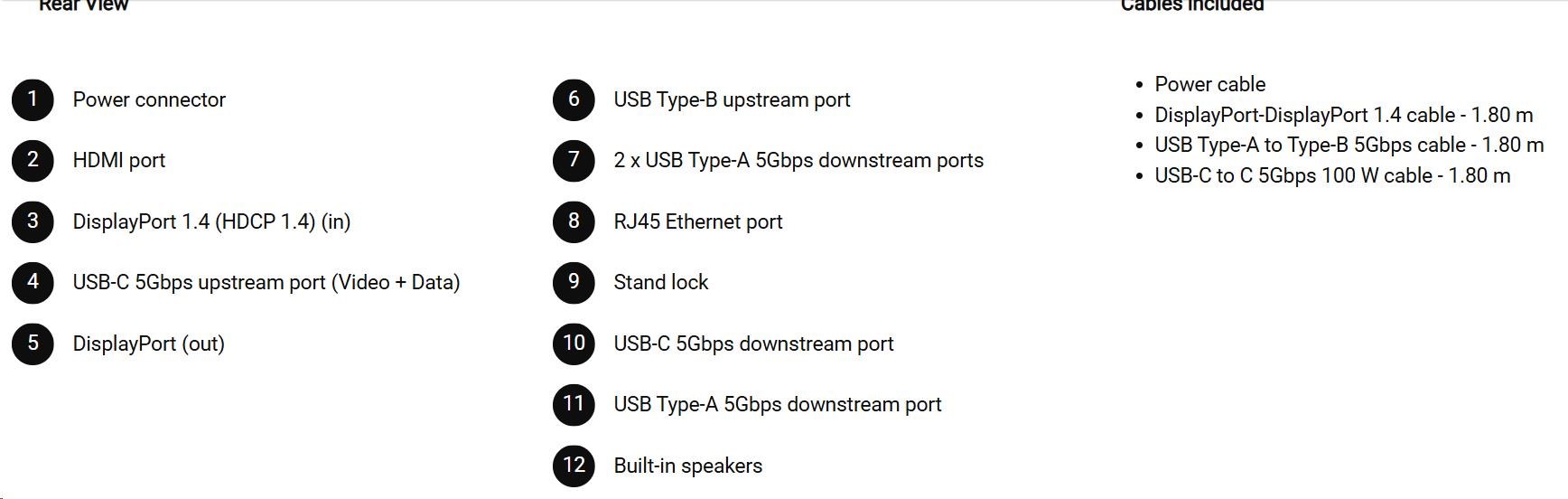 • 1 USB-C 5Gbps upstream port/s (DisplayPort 1.4 Alt Mode, Power Delivery up to 90 W)