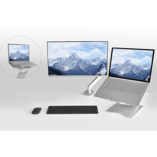 Tento plne nastaviteľný stojan na notebook vám umožní umiestniť obrazovku do úrovne očí, či už sedíte, stojíte alebo sa nachádzate medzi týmito polohami. Je ideálny na zabezpečenie ergonomicky správneho držania tela pri práci, ako rečnícky pult pri prezentáciách alebo dokonca ako stojan na kuchárku pri varení. ? Plne nastaviteľný jediným tlačidlom: ľahká úprava výšky od 30 do 450 mm ? Zdvihá obrazovku až o 45 cm pre optimálny komfort sledovania ? Platforma nastaviteľná až do uhla 70 ° pre najlepší pozorovací uhol ? Výrezy v konštrukcii podporujú prúdenie vzduchu a ochladzujú notebook ? Vyrobený z pevnej a odolnej hliníkovej zliatiny ? Silikónové podložky a nôžky pre stabilitu a ochranu proti sklzu S DESQ stojanom na notebook nastavíte displej do ideálnej výšky, čo podporuje zdravé a ergonomické držanie tela a pomáha predchádzať bolesti chrbta, krku a únave očí.
