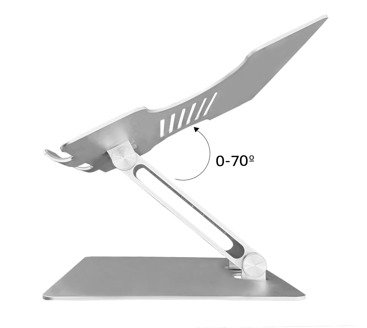 Plne nastaviteľný stojan na notebook umožňuje nastaviť váš notebook do akejkoľvek výšky a uhla pre ergonicky správne držanie tela. Celý je vyrobený z vysoko kvalitnej hliníkovej zliatiny a navrhnutý v modernom minimalistickom dizajne. ? Plne a ľahko nastaviteľný podľa vašich potrieb ? Zvyšuje obrazovku až o 28 cm pre optimálnu výšku ? Platforma nastaviteľná až do uhla 70 ° pre ideálny pozorovací uhol ? Ľahká konštrukcia a skladací dizajn na jednoduché prenášanie ? Výrezy v konštrukcii pre lepšie prúdenie vzduchu a chladenie notebooku ? Pevná a odolná hliníková zliatina ? Silikónové podložky a nožičky pre stabilitu a ochranu povrchu stola S DESQ stojanom na notebook nastavíte displej do ideálnej výšky, čo podporuje zdravé a ergonické držanie tela a pomáha predchádzať bolestiam chrbta, krku a únave očí.