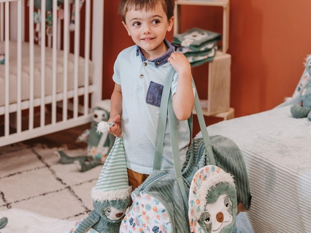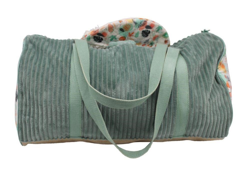 Originálna cestovná taška nemusí byť iba detskou cestovnou taškou, svoje využitie nájde ako športová taška aj ako roztomilá prebaľovacia taška. Textilná taška z príjemného manšestru, v neutrálnom zelenej farbe s lenochodom, pojme všetko, čo vaše dievčatko alebo chlapec na víkend u starkej, na výlet alebo na dovolenku potrebuje. Prezrite si hebkú tašku na hračky, oblečenie, športové aj prebaľovacie potreby.