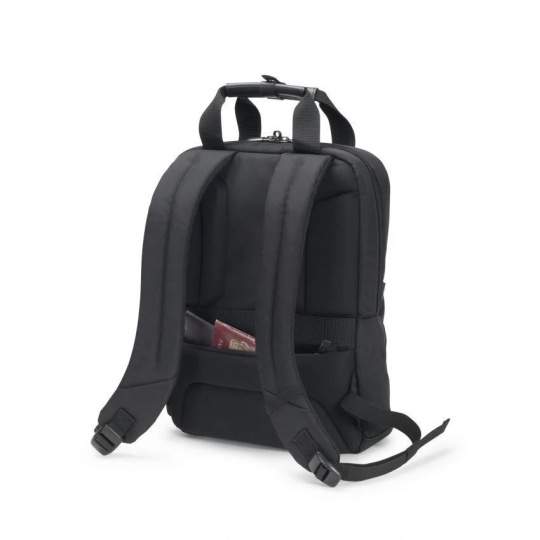 DICOTA is an official participant in the Microsoft Designed for Surface program, which certifies exceptional accessories created by third-party manufacturers to work seamlessly with Surface devices. The lockable notebook compartment is equipped with memory foam and automatically adjusts to Microsoft Surface devices up to 15" thanks to the fit-all system. Optimal hold is provided by the anti-slip technology coating, which prevents the device from slipping out of the backpack. Best protection for tablets up to 12.9 inches. The front pocket with key ring and pockets keeps your personal items tidy and has room for additional mobile accessories. Maximum carrying comfort thanks to ergonomic back padding, length-adjustable shoulder straps, comfortably shaped carrying handle and trolley fastening strap. Hidden zipped pocket on the back to safely store passport, wallet or other valuables. Side pockets for storing an umbrella or water bottle. The bottom of the bag is made from waterproof material. Made from 13 high-quality recycled PET bottles Compatible with any Surface Pro, Pro X, Laptop, Go, Laptop Go, Laptop SE, Book, Laptop Studio as well as Duo Slim design Lockable and padded Notebook compartment with fit-all system and non-slip technology Maximum security thanks to memory foam Notebook compartment for Surface devices up to 15" Padded slide-in pocket for tablets up to 12.9" Spacious front pocket with zipped pocket, key holder and workstation for accessories, plus power supply and cables Hidden zipped pocket for passport, wallet etc. Expandable side pocket for umbrella or water bottle Comfortable carrying handle Adjustable shoulder strap Ergonomic back padding Trolley belt Waterproof material at the bottom More Information More Information Item number D31820-DFS Color black Volume in liters 10 Material 900Dx600D rPET Warranty Lifetime / 30 years EAN 7640186417662 Max. Device Measurements (mm) 350 x 30 x 245 mm 13.78 x 1.18 x 9.65 inch Product Measurements (mm) 295 x 400 x 85 mm 11.61 x 15.75 x 3.35 inch Weight 0.96 kg / 2.11 lbs.