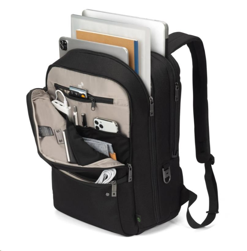 Batoh FIVE kombinuje bezpečnosť, organizáciu a ergonomické pohodlie v elegantnom a funkčnom dizajne. Ochranná priehradka na notebook je vybavená streďovou oporou v tvare písmena V, ktorá zabezpečuje, že vaše zariadenie zostane bezpečne na mieste a v optimálnej polohe. V prednej priehradke s organizovanými kapsami je prehľadne uložené príslušenstvo a nevyhnutné veci, zatiaľ čo ergonomický, priedušný vankúš na chrbte poskytuje celodenné pohodlie. Je vyrobená z 32 recyklovaných PET fliaš, čo predstavuje udržateľnú voľbu, ktorá neohrozuje funkčnosť ani odolnosť.