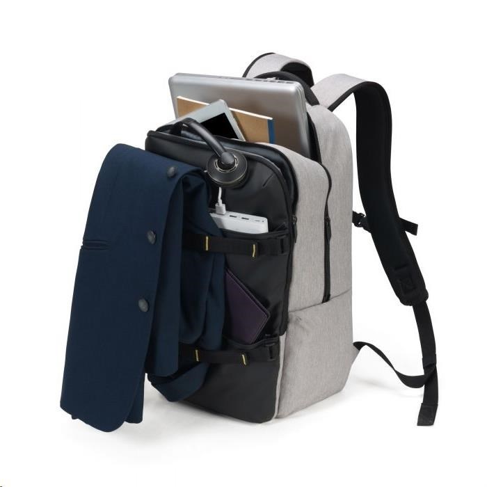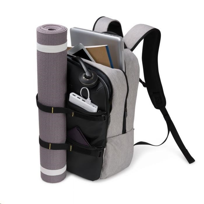 Od hodín jogy až po kanceláriu. MOVE je určený na každodenné používanie. Pohodlná vďaka ergonomickému polstrovaniu chrbta a polstrovaným ramenným popruhom s nastaviteľným hrudným pásom. S batohom môžete dokonale manévrovať vďaka dvom rukovätiam na prenášanie. Tkanina je vyrobená z vodoodpudivých materiálov, ale v prípade búrky batoh obsahuje aj pláštenku s reflexným logom DICOTA. Primárny úložný priestor obsahuje priehradku na notebook s polstrovaním z peny s vysokou hustotou (HDF), polstrované vrecko na tablet do 10.5 palcov, priehradkou na dokumenty a elastickým sieťovaným vreckom na fľašu s nápojom. Druhá hlavná priehradka obsahuje priehradky na slúchadlá a priečinky.