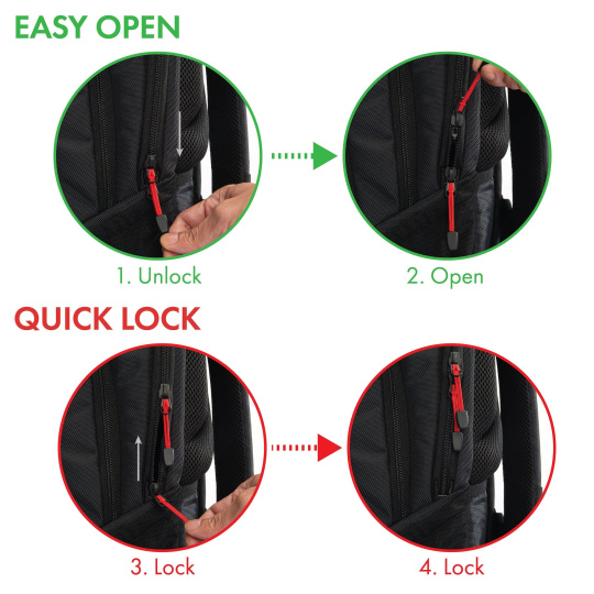 Priestor na notebook so systémom Fitall a uzamykateľným bezpečnostným zipsom YKK