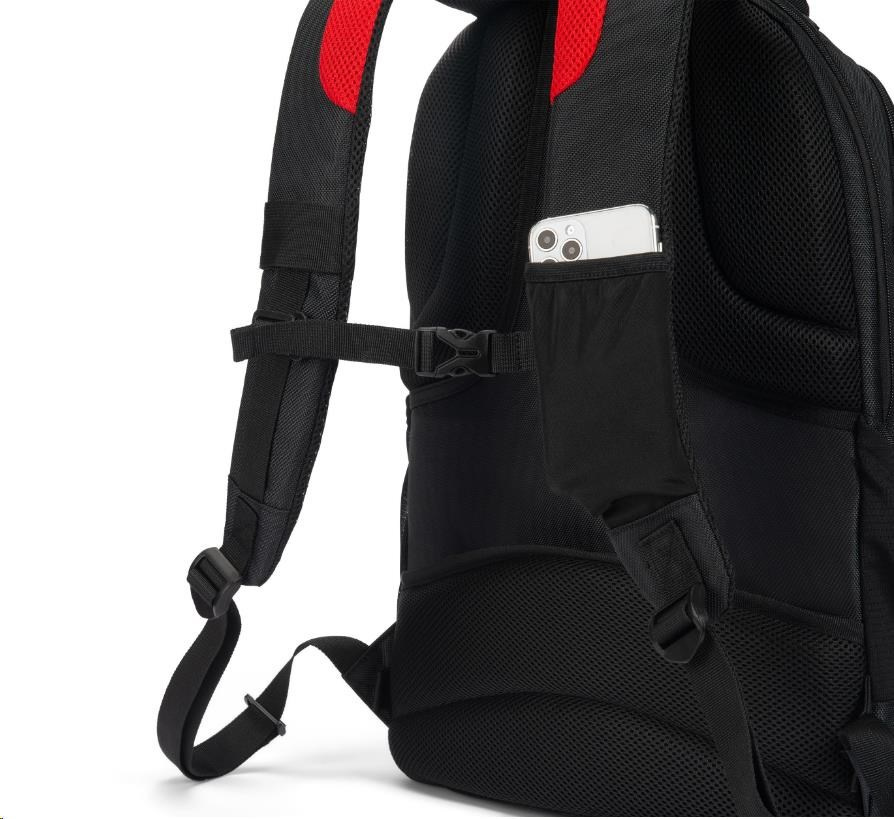Polstrované ramenné popruhy s hrudným popruhom a elastickou kapsou na smartphone