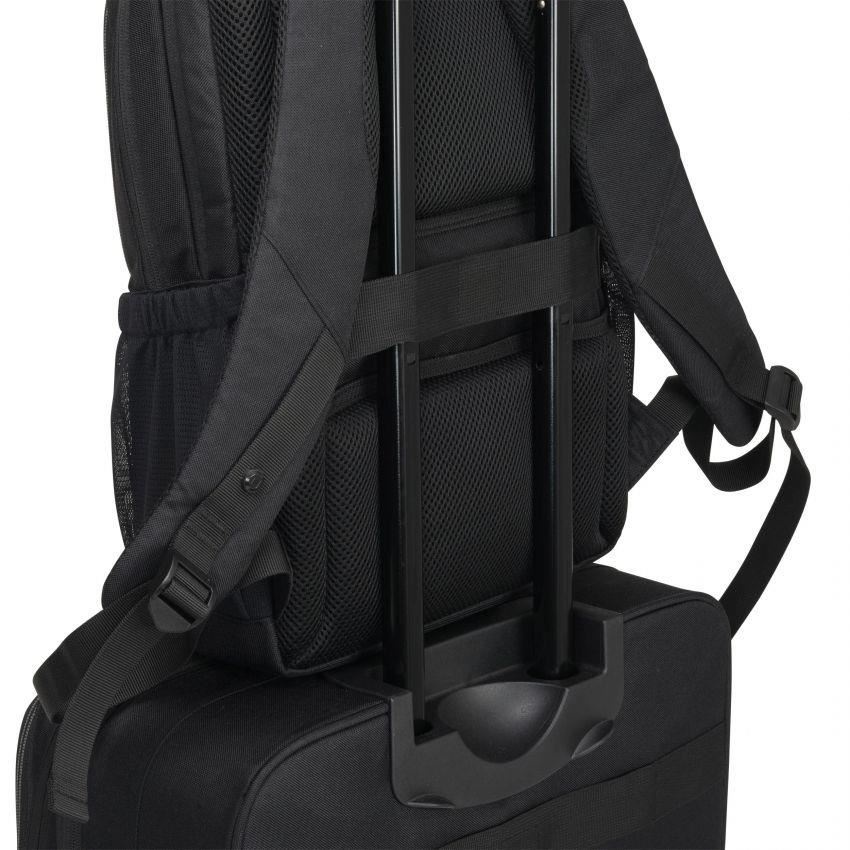 Charakteristika - Vyrobené z 12 recyklovaných PET fliaš - 19.úložný priestor s objemom 5 litrov - Uzamykateľná priehradka na notebook obklopená penou s vysokou hustotou (HDF) ako ochranným polstrovaním - Spoľahlivé upevnenie zariadení vďaka elastickému popruhu na upevnenie notebooku - Priestranná hlavná priehradka - Polstrovaná priehradka na tablety s rozmermi do 12.9" - Rozšíriteľné vnútorné vrecko so zapínacím pásikom na slúchadlá - Predné vrecko s funkčnými priehradkami na mobilné príslušenstvo