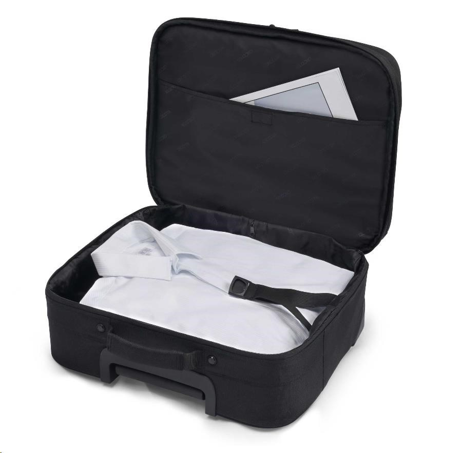 Laptop Roller Eco Multi SCALE 14-15.6" Tento vozík ponúka neobmedzenú mobilitu a je ideálnym spoločníkom na krátke služobné cesty alebo na voľný čas. Dnešné činy formujú zajtrajší svet. Preto sa v spoločnosti DICOTA venujeme vývoju riešení šetrných k životnému prostrediu, a preto všetky predmety v našich kolekciách ECO vyrábame z udržateľného recyklovaného PET. Opätovne použijeme až 45 PET fliaš, takže dostanete ekologický výrobok s doživotnou zárukou. Aj naše výrobky z PET majú kvalitu, vzhľad a povrchovú úpravu, ktoré poznáte a máte radi. Špecifikácie Art.no.: D31441-RPET EAN: 7640158666401 Hmotnosť: 2.4 kg Objem: 22 litrov Materiál: 600D recyklovaný PET Záruka: 24 mesiacov Rozmery: 420 x 350 x 225 mm Max. Rozmery zariadenia: 385 x 265 x 35 mm Charakteristika - Vyrobené zo 14 recyklovaných PET fliaš - Uzamykateľná polstrovaná priehradka na notebook s penou vysokej hustoty (HDF) - Popruh na notebook a deliaca priehradka - Polstrované vrecko na tablet do 12.9" - Veľká hlavná priehradka na oblečenie, dokumenty a inú batožinu - Predné vrecko s pracovnou plochou na mobilné príslušenstvo - Zosilnený rám a účinná ochrana hrán - Vysokokvalitné vymeniteľné kolieska..
