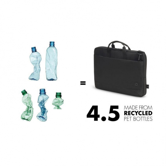 Charakteristika - Made of 4.5 recyklovaných PET fliaš - Polstrovaná priehradka na notebook s penou vysokej hustoty (HDF) - Vrecko na tablet do 10.9" - Predné vrecko s úložným priestorom na mobilné príslušenstvo - Priehradka na dokumenty na zadnej strane - Pohodlné polstrované držadlo - Odnímateľný, nastaviteľný ramenný popruh - Vodoodpudivý materiál..