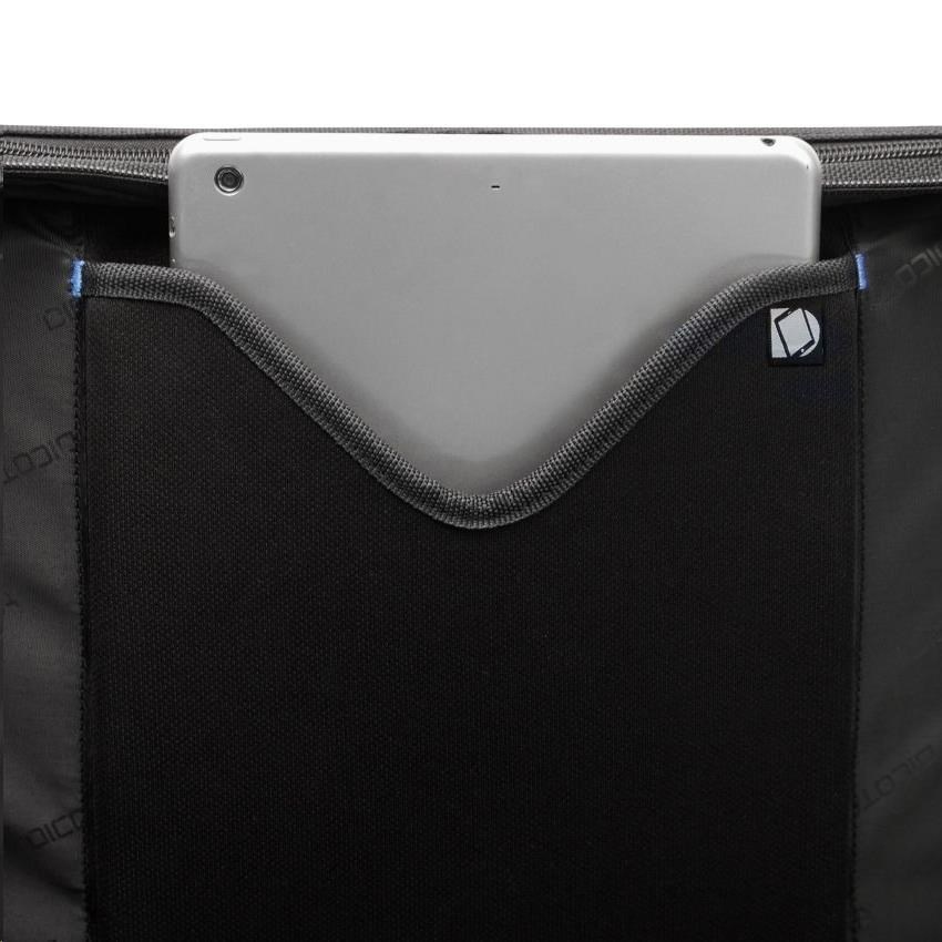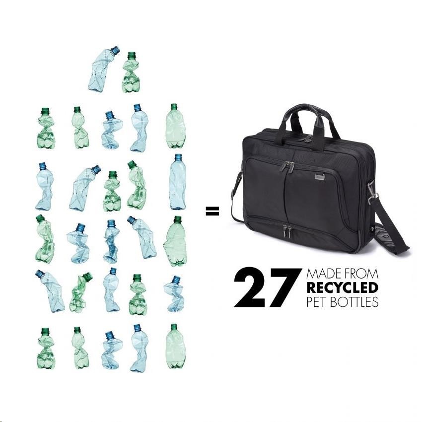 Cestujte "1. triedou" so zariadením Eco Top Traveller PRO. Taška toploader vás spoľahlivo sprevádza všade a spĺňa najvyššie štandardy kvality, funkčnosti a ochrany: vďaka pozornosti venovanej detailom je táto taška DICOTA jedným z vašich najspoľahlivejších obchodných partnerov! Oddeľovacia stena systému fitall v priehradke na notebook je chránená cez notebook a automaticky sa prispôsobí veľkosti od 15 do 17.3". Perforovaný, a teda ľahký penový materiál EVA v uzamykateľnom priestore na notebook dokonale chráni okraje vášho zariadenia. Povrchová úprava s protišmykovou technológiou zaisťuje dokonalé uchopenie notebooku v priehradke. Vynikajúca ochrana pre váš tablet do 12.9" vďaka priehradke v tvare EVA s mimoriadne mäkkou vnútornou podšívkou Nylex. Veľkorysý úložný priestor na dokumenty. Predné vrecko s príveskom na kľúče a vkladacími vreckami umožňuje organizovať osobné vybavenie a poskytuje priestor na ďalšie mobilné príslušenstvo. Ďalšie vrecko na nabíjačku a káble. Taška je ľahká a pohodlná do ruky vďaka kvalitným rukovätiam z pravej kože. Popruh na vozík možno použiť aj ako ďalšiu priehradku na dokumenty. Dno tašky je vyrobené z nepremokavého materiálu. Puzdro Eco Top Traveller PRO je preto pre vás ideálne, ak ste stále na cestách a chcete podporiť recykláciu PET fliaš ekologickým puzdrom.
