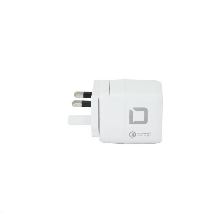 - 3 vymeniteľné cestovné zástrčky pokrývajú viac ako 200 krajín a