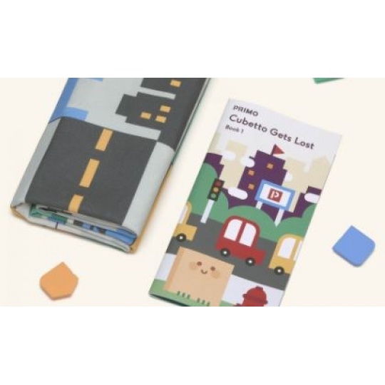 Sada obsahuje hraciu mapu z polyesteru o veľkosti 1 x 1 meter, ktorá je rozdelená na 36 polí o rozmeroch 15 x 15 cm, a knihu s príbehmi, v ktorých Cubetto prežíva svoje dobrodružstvá.