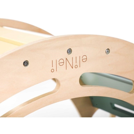 Veľká drevená Montessori hojdačka 6v1, v sete so špeciálnym obojstranným doskou a stoličkou, vám umožní vytvoriť dúhový set detského nábytku (stôl so stoličkou) takmer kdekoľvek. Rovnakou ľahkosťou tento set premeníte na malé detské ihrisko so šmýkačkou alebo lezeckou stenou. Multifunkčná Montessori hojdačka max umožní deťom príjemne sa pohupovať, môže byť lezeckou, šmýkačkou, skrýšou, mostom, s ďalšími časťami setu stolíčkom alebo detským ihriskom. Pastelový set je vhodný pre deti už od 1 roka.