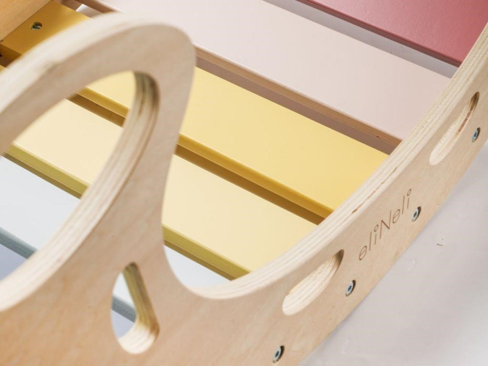 Vylepšená multifunkčná drevená hojdačka 5v1, s doskami v osviežujúcich fresh farbách, je zábavnou hračkou pre deti, ktorú využijú pri pohybových aktivitách aj pri hre. Montessori hojdačka umožní deťom príjemne sa pohupovať, výborne poslúži ako lezecká dráha, skluzavka, úkryt, most, stolička alebo predajný pultík pri hre na obchod. Hojdačka prirodzeným spôsobom rozvíja motorické schopnosti a je vhodná pre deti už od 1 roka.