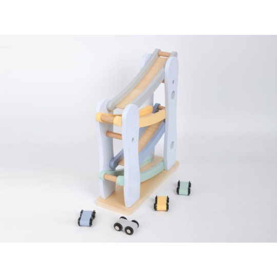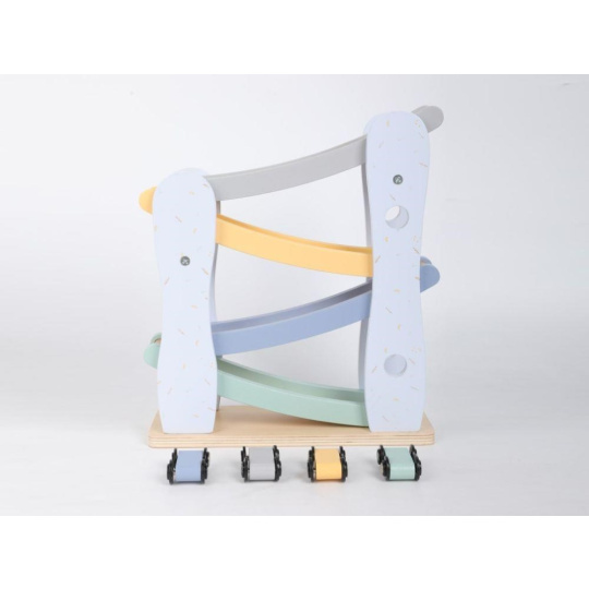 Drevená závodná dráha (autodráha) v krásnych pastelových farbách, so 4 farebnými autíčkami, prebudí dušu pretekára v každom dieťati a pravdepodobne aj v rodičoch. Usporiadanie pretekov s pretekárskymi autami priamo v detskej izbe je zábavnou hrou pre celú rodinu. Rozhodujúce pri tejto hre je správne koordinovanie, presnosť, chvíle sústredenia, jednoducho správne umiestnenie pretekárika na vrchol pretekárskej dráhy.