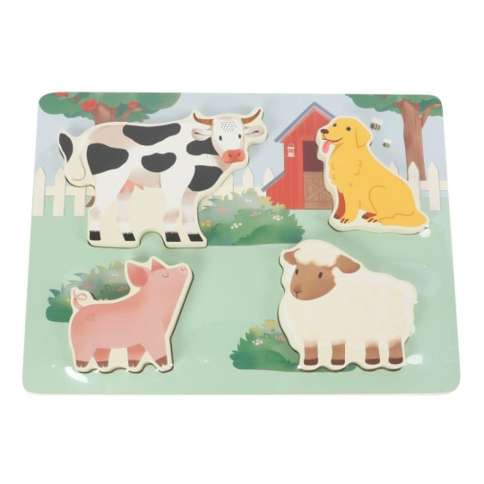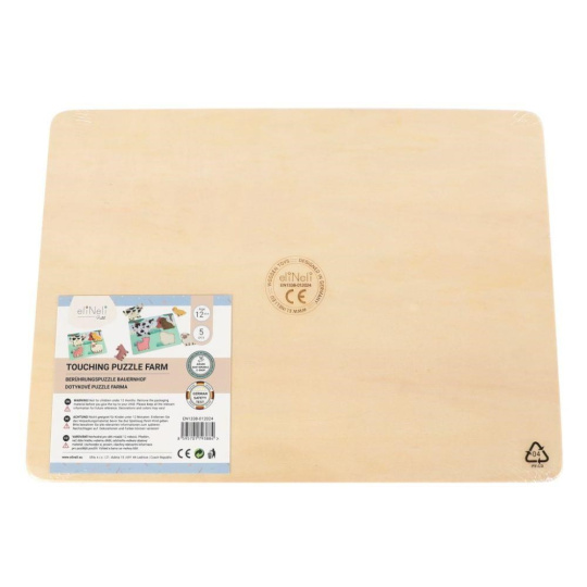 Originálne *drevené vkládacie puzzle* zavedie deti na farmu, zoznámi ich so zvieratkami, ktoré môžu poznať zo svojho okolia aj ich kožuškom. Zvieratká v ich skutočnej podobe dodávajú hre spolu s rôznymi textúrami realistický nádych. Deti pri hre s puzzle zdokonaľujú motorické zručnosti, koordináciu očí a rúk, stimulujú zmysly a učia sa spoznávať zvieratká z farmy.