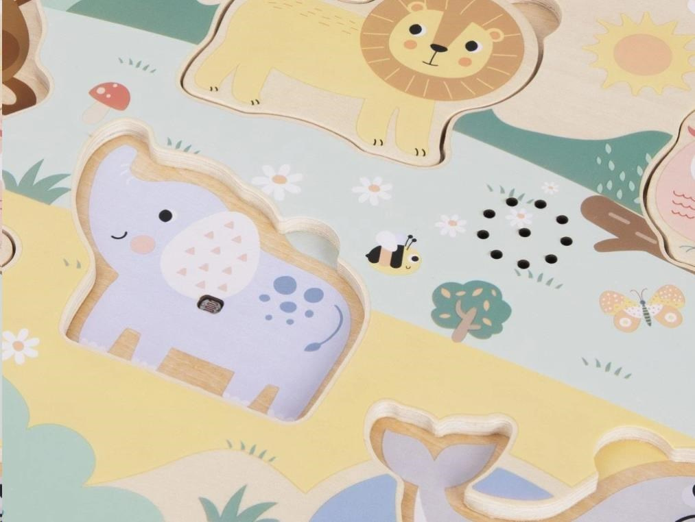 - Zvukové - toto vkladacie puzzle nie je len tak obyčajné, je to totiž zvukové puzzle so zvukmi zvierat.
