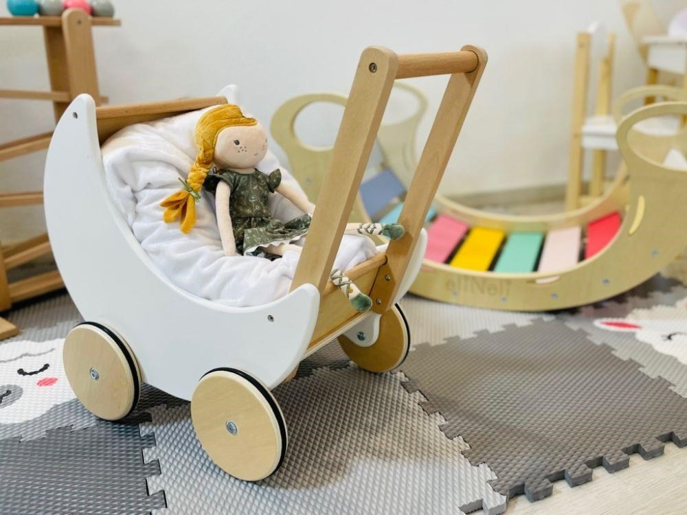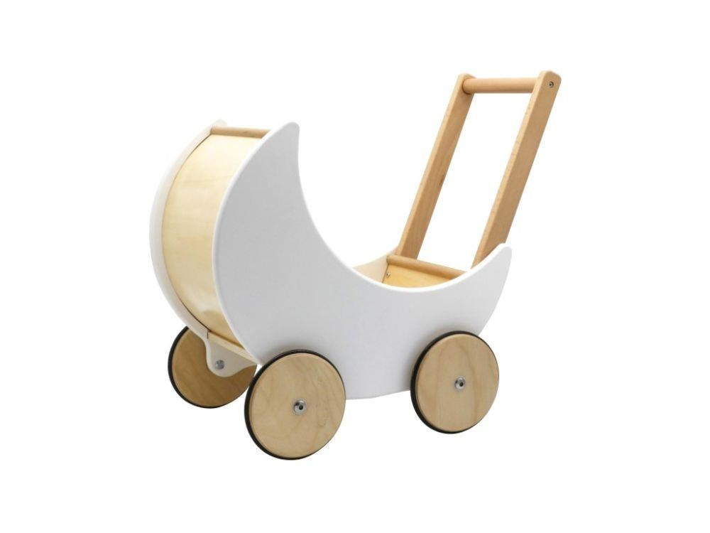 Designový kočárek ve tvaru mesiačika, vyrobený z prírodného dreva, je ako stvorený pre krátke aj dlhé prechádzky, uspávanie obľúbených bábik alebo plyšákov. Drevený kočík dobre padne do detskej ruky, ľahko sa riadi a ovláda. Kočík pre bábiky zaparkovaný v detskom kráľovstve vašej princeznej je súčasne aj krásnou dekoráciou.