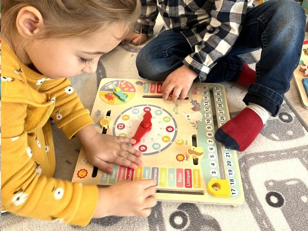 - Hodiny - uprostred kalendára nájdu deti farebné hodiny s červenými ručičkami, ktoré ich naučia orientovať sa v čase.