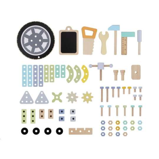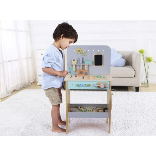 Detský drevený ponk v jemných pastelových farbách nadchne deti aj dospelých svojím nadštandardným vybavením. Okrem klasického kutilského náradia je jeho súčasťou aj kotúčová píla, zváračka a dokonca kompresor. Bohaté príslušenstvo a rôzne vychytávky sú zárukou zábavnej hry na majstra, ktorá u detí zdokonalí ich zručnosti a naučí ich novým.