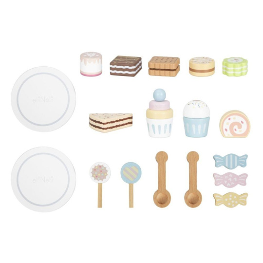 Drevený poschodový stojan s lahodne vyzerajúcimi drevenými zákuskami a cukrovinkami je ako stvorený na oslavy a čajové posedenia usporiadané pre rodičov, kamarátov aj obľúbené plyšové hračky. Drevený stojan s bohatým príslušenstvom je skvelým doplnkom do detskej kuchynky aj obchodu. Deti si môžu zahrať na cukrárov aj predavačov, rozvíjať svoju fantáziu a zdokonaľovať zručnosti.