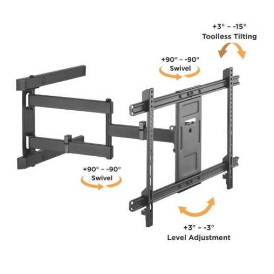 Držiak LCD LED TV Fiber Mounts TALL1 Vynikajúci nástenný držiak na TV 37-80", otočný, sklopný, výsuvný, VESA štandardy 200x100 až 600x400, nosnosť 50kg Kvalitný nástenný držiak na LCD, LED a plazmové televízie s uhlopriečkou 37-80". Držiak má kvalitnú konštrukciu, ktorá unesie televíziu s hmotnosťou až 50kg, spoľahlivá a bezpečná inštalácia na stenu zaručujú dlhšie nástenné lišty, vďaka ktorým sa celková hmotnosť rozloží na veľkú plochu. Podporuje VESA štandardy pre zavesenie TV s roztečou 200x100 až 600x400. Držiak TALL1 umožňuje televízii otáčať do strán, naklápať, vysúvať a prišovať ku stene, ľahko upraviť rovinu obrazu. Farebné prevedenie čierne. Záruka 5 rokov. Kvalitný držiak TV 37-80", otočný, sklopný a výsuvný - Fiber Mounts TALL1 Technické údaje: nosnosť 50 kg vhodný na televízie s uhlopriečkou 37-80" podporuje VESA štandardy 200x100 až 600x400 výsuvný od steny v rozmedzí 76 - 620 mm otáčanie do strán +/- 90° naklonenie TV +3° až -15° korekcia roviny +/- 3° kvalitná konštrukcia prodlúžené nástenné lišty pre bezpečné ukotvenie a perfektné rozloženie hmotnosti veľmi jednoduchá inštalácia vďaka šablóne na predvŕtanie otvorov do steny farebné prevedenie čierne záruka 5 rokov Výsuvný držiak TV 37-80", otáčanie TV do strán, naklápanie TV - Fiber Mounts TALL1 Nástenný držiak na TV Fiber Mounts TALL1 podporuje VESA štandardy: VESA 200x100 VESA 200x200 VESA 300x200 a 200x300 VESA 300x300 VESA 400x200 a 200x400 VESA 400x300 a 300x400 VESA 400x400 VESA 600x400 Držiak TV Fiber Mounts TALL1 je vhodný na všetky televízie, ktoré podporujú ktorýkoľvek z vyššie uvedených VESA štandardov a ich hmotnosť nie je vyššia ako 50kg. Nástenné lišty o dĺžke 423mm zabezpečia spoľahlivé a bezpečné ukotvenie držiaku do stien. Každá lišta má 3 kotviace otvory. Vďaka tomu sa celková hmotnosť výborne rozloží na veľkú plochu a je zaručená vyššia bezpečnosť. Držiak je vhodný na inštaláciu na klasické tehličkové, betónové a drevené steny, ale aj siporexové alebo z dutých tehál (v týchto prípadoch je nutné zakúpiť k tomu určené hmoždinky). Inštalácia na sadrokartónové steny je možná iba v prípade ukotvenia do nosníkov alebo výdrevy, samotný sadrokartón na inštaláciu nie je vhodný.