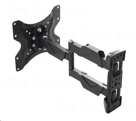 Držiak LED plazma LCD televízie Fiber Mounts DT742 Kvalitný a cenovo dostupný držiak na zavesenie TV 13-42 palcov na stenu, otáčanie do strán, náklon, nastaviteľná vzdialenosť, korekcia roviny, krytky na káblovú správu Výnimočný pomer kvality a ceny robí z držiaka Fiber Mounts DT742 jeden z najpredávanejších držiakov na slovenskom trhu. Jednoduché a bezpečné zavesenie všetkých typov a značiek televízorov s uhlopriečkou 13-42 palcov, jednoduché nastavenie do požadovanej polohy - otáčanie do strán, náklon, vzdialenosť od steny, korekcia roviny. Oceľová konštrukcia držiaka je osadená dizajnovými krytkami na fixáciu káblov. Dodávame vrátane inštalačného materiálu. Držiak na LED plazmové a LCD televízie s uhlopriečkou 13-42 palcov, otáčateľný do strán, sklápací, dĺžkovo nastaviteľný, VESA štandard, nosnosť 25kg, vynikajúci pomer kvality a ceny, kryty káblov, záruka 3 roky - Fiber Mounts DT742 Technické údaje: nosnosť 25kg podporuje VESA štandardy 75x75 až 200x200 odporúčaná uhlopriečka televízora 13-42 palcov otáčanie do strán +/- 90° náklon nahor alebo nadol +/- 12° korekcia roviny +/- 3° nastaviteľná vzdialenosť od steny v rozmedzí 59 až 400mm dizajnové krytky na fixáciu káblov výnimočná kvalita oceľová konštrukcia zaistenie TV proti vysadeniu jednoduchá a rýchla montáž farebné prevedenie čierne záruka 3 roky Držiak Fiber Mounts DT742 podporuje VESA štandardy: VESA 75x75 VESA 100x100 VESA 200x100 VESA 200x200