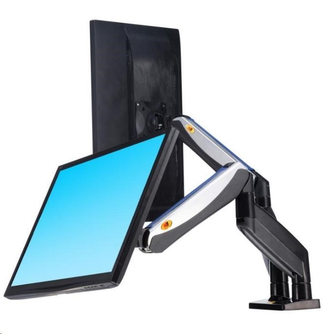 Nastaviteľný držiak pre dva monitory s hmotnosťou od 2 kg do 8 kg, TOP dizajn a kvalita Veľmi kvalitný stolný držiak na zavesenie 2 monitorov na stolovú dosku v kancelárii, pracovni alebo domácnosti. Monitory je možné nezávisle otáčať do strán, nakloniť, posúvať. Môže byť tiež nastavená výška od stolovej dosky, horizontálne aj vertikálne otáčanie obrazovky, korekcia roviny. Stačí raz nastaviť hmotnosť Vášho monitora na držiaku a ďalej už nemusíte používať žiadny nástroj. Veľmi pekný dizajn, kvalitná bezpečná konštrukcia, ľahká manipulácia. Polohovateľný stolný držiak na dva monitory do kancelárie Technické údaje: celková nosnosť 16kg zavesenie 2 monitorov s hmotnosťou 2-8kg odporúčame na monitory 19" až 30" nakoň +55°/-8° natočenie monitora vpravo-vľavo o 180° otáčanie ramena o 360° funkcia PIVOT - otočenie monitora o 360° minimálna výška monitora od pracovnej dosky 230 mm (stred monitora) maximálna výška monitora od pracovnej dosky 530 mm (stred monitora) maximálna hrúbka pracovnej dosky 90 mm nastaviteľná vzdialenosť do 625 mm Korekcia roviny 2x USB port Systém pre skryté vedenie káblov dva typy uchytenia ku stolu - na okraj alebo cez dosku vestavená pružina pre jednoduché nastavenie výšky vysoká kvalita s dôrazom na detail moderný dizajn vyrobené z hliníka a zliatiny ocele ľahká a rýchla inštalácia farebné prevedenie čierne+chrom záruka 5 rokov Stolný držiak F185A podporuje VESA štandard: 75x75 100x100