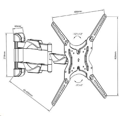 vynikajúci držiak na zavešenie plochých televízorov s uhlopriečkou 13-52 palcov, otočný a sklopný, dĺžkovo nastaviteľný Lacný, no vynikajúci držiak na zavešenie všetkých typov a značiek plochých televízorov na stenu. Držiak umožňuje otáčanie do strán, náklon dole aj hore, korekciu roviny, nastavovanie vzdialenosti obrazovky od steny. Oceľová konštrukcia zabezpečuje spoľahlivé a bezpečné zavešenie TV, nechýba ani zajištenie proti vysadeniu. Technické údaje: nosnosť 30kg podporuje VESA štandardy 75x75 až 400x400 vhodný na zavešenie všetkých typov a značiek plochých televízorov odporúčaná uhlopriečka televízora 13 až 52 palcov otáčanie do strán +/- 90° nástoj dole aj hore +/- 12° nastaviteľná vzdialenosť od steny 65 až 406mm korekcia roviny +/- 3° dizajnové kryty na fixovanie káblov vynikajúca kvalita oceľová konštrukcia zabezpečenie proti vysadeniu TV ľahká a rýchla montáž farebné prevedenie čierne záruka 3 roky Držiak TV Fiber Mounts D7C43 podporuje VESA štandardy: VESA 75x75 VESA 100x100 VESA 200x100 VESA 200x200 VESA 300x300 VESA 400x200 VESA 400x300 VESA 400x400