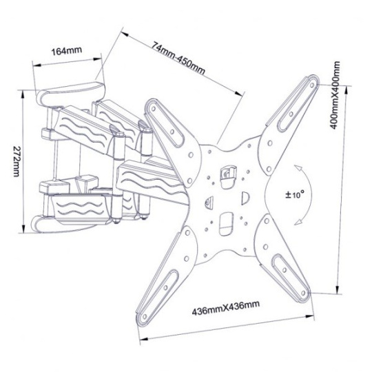 Dvojramenný otočný držiak na TV Fiber Mounts FM73 Kvalitný polohovateľný držiak na televízie 30-60", dvojramenný. nosnosť 35kg Nástenný držiak pre spoľahlivé a bezpečné zavesenie televízie na stenu a jej úpravu polohy. Držiak je ideálny na TV 30-60", podporuje VESA 75x75 až 400x400 a môžete naň zavesiť televíziu s hmotnosťou až 35kg. Držiak umožňuje televízii vysúvať od steny, otáčať do strán a naklápať nahor aj nadol. Konštrukcia je oceľová a je vybavená dizajnovými krytkami, pod ktorými ľahko skryjete a zafixujete všetky káble. Farebné prevedenie čierne, záruka 5 rokov. Nástenný dvojramenný držiak na otáčanie a naklápanie televízie Fiber Mounts FM73 Technické údaje: nosnosť 35kg podporuje VESA 75x75 až 400x400 vhodný na televízie s uhlopriečkou 30" až 60" minimálna vzdialenosť televízie od steny 74mm maximálna vzdialenosť televízie od steny 450mm otáčanie televízie na obe strany +/- 45° naklápanie televízie hore alebo dole o +/- 10° dizajnové krytky konštrukcie so systémom na skrytie káblov výnimočná kvalita, oceľová konštrukcia balenie obsahuje inštalačný materiál farebné prevedenie čierne záruka 5 rokov Držiak pre zavesenie televízie na stenu s kvalitnou dvojramennou konštrukciou Fiber Mounts FM73 Nástenný dvojramenný držiak TV Fiber Mounts FM73 podporuje VESA štandardy: VESA 75x75 VESA 100x100 VESA 100x200 VESA 200x100 VESA 200x200 VESA 300x300 VESA 400x400 Držiak Fiber Mounts FM73 je vhodný na zavesenie každej televízie, ktorá podporuje ktorýkoľvek z vyššie uvedených VESA štandardov a jej hmotnosť nie je vyššia ako 35kg. Na uhlopriečke televízie nezáleží, televízia môže mať aj výrazne viac ako 60".