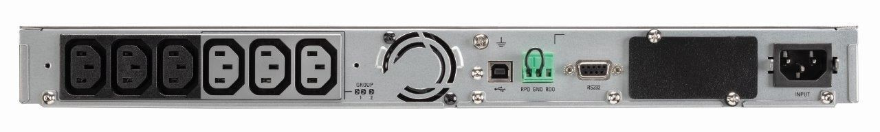 | Špeciálne funkcie | Automatická regulácia napätia (AVR) Ochrana s vysokou hustotou pre siete: len 1U Energetická účinnosť, zníženie nákladov na energiu a chladenie Poskytuje čistý sinusový výstup Kompatibilná s virtuálnymi prostrediami (VMware, Hyper-V, Citrix Xen, Redhat) Plne sa integruje so softvérom Eaton Intelligent Power Manager 1 USB port + 1 sériový port Technológia Advanced Battery Management (ABM) pre predĺženie životnosti batérie Grafický LCD displej novej generácie Batérie vymeniteľné za prevádzky Diaľkový reštart a optimalizácia chodu vďaka 2 spravovateľným skupinám zásuviek |