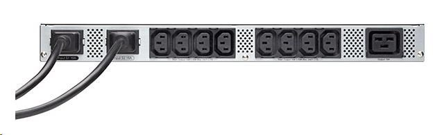 Prepínače Eaton ATS ponúkajú cenovo dostupné riešenie pre zákazníkov, ktorí chcú vybaviť sieťové zariadenia, ako sú prepínače a smerovače, redundanciou napájania. Tento automatický prepínač ich bude napájať z dvoch nezávislých zdrojov. Ak jeden z napájacích zdrojov zlyhá, druhý napájací zdroj bude k napájanému zariadeniu pripojený bez prerušenia. Prepínače Eaton ATS možno pripojiť k viacerým napájaným zariadeniam súčasne, čím sa ušetrí na drahých redundantných zdrojoch napájania. Menovitý prúd 16 A Menovité napätie / vstupná frekvencia 208/220/230/240 V ; 50/60 Hz Typický čas spínania 8 ms Bezpečnosť IEC/EN 62310-1, IEC/EN 60950-1 EMC IEC/EN 62310-2 Značky CE Vstupy 2x IEC C20 + 2 vstupné káble Výstupy 8x IEC C13 + 1x IEC C19 Používateľské rozhranie LCD Používateľské rozhranie Sieťová komunikácia Nie Rozmery a hmotnosť Rozmery V x Š x H 43 x 430 x 250 mm Hmotnosť 3,3 kg..