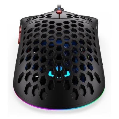 Ultraľahká herná myš disponujúca 6 programovateľnými tlačidlami a vysoko presným optickým senzorom Pixart PMW3370 s rozlíšením až 19000 dpi. Herný dizajn dopĺňa adresovateľné RGB podsvietenie. Kvalitné spínače Khail GM 8.0 vydržia viac než 80 miliónov kliknutí. Pripojenie je realizované cez opletený USB kábel dĺžky 1,8 m.