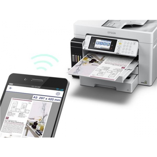 Toto ľahko použiteľné zariadenie EcoTank Pro Wi-Fi umožňuje tlačiť, skenovať, kopírovať a faxovať dokumenty s výnimočne nízkymi nákladmi na tlač a nízkou spotrebou energie vďaka technológii Heat-Free. Vysokorýchlostná tlač a skenovanie formátu A3 a A4 vám šetrí čas. Pomocou technológie Open Platform možno mnohé softvérové riešenia ľahko integrovať do existujúcej IT infraštruktúry.