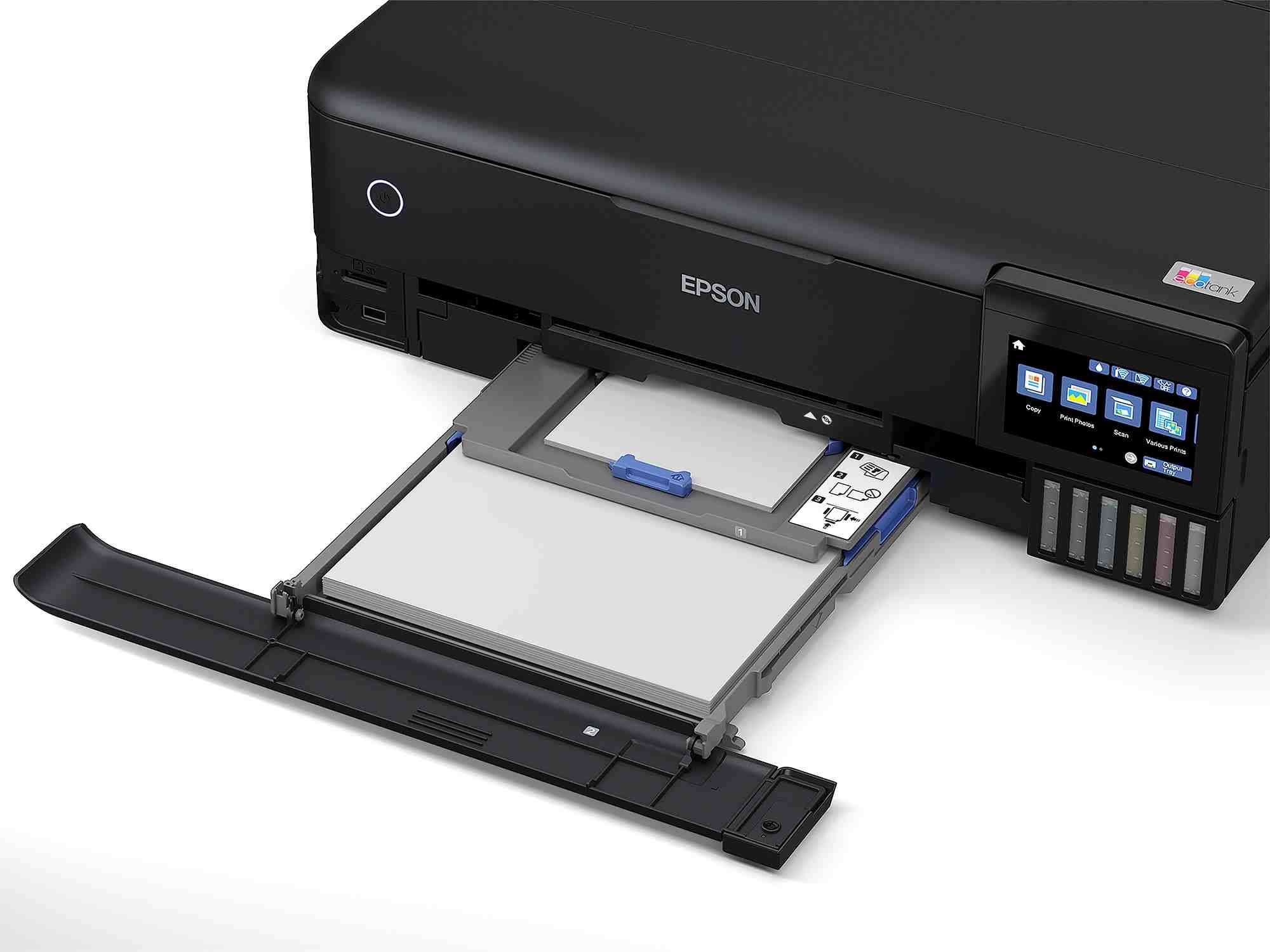 Objavte nevídanú kreativitu s úžasnými fotografiami a dokumentmi formátu A3+ za neuveriteľne nízke náklady na stranu. Vďaka pôsobivému 10,9 cm farebnému dotykovému displeju, 5 režimom podávania médií a inovatívnemu systému šiestich farieb môžete ľahko tlačiť, kopírovať a skenovať. Je to dokonalá tlačiareň pre každú umelecky založenú modernú rodinu. Nie je potrebné vymieňať atramentové kazety a tlačiareň má flexibilné možnosti pripojenia.