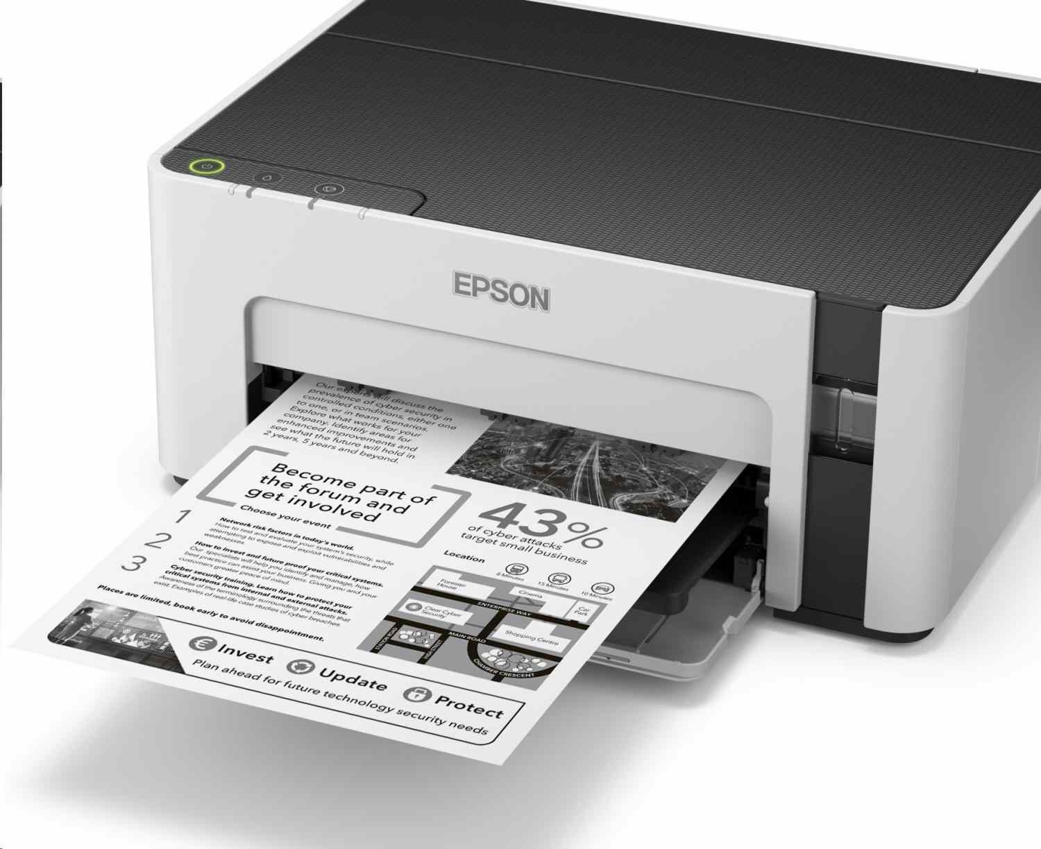 Táto odolná, rýchla a energeticky úsporná tlačiareň EcoTank s plniteľnou atramentovou nádržkou vám pomôže znížiť náklady na tlač. Toto úsporné riešenie umožňuje vytlačiť až 5 000 strán s dodaným čiernym atramentom1. Už nemusíte čakať na výtlačky vďaka nulovému času zahrievania a rýchlosti tlače 15 str./min2. Zariadenie M1100 možno pripojiť k počítaču prostredníctvom rozhrania USB. Ponúka aj zásobník na 150 listov papiera.