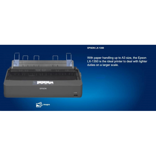 Ihličková tlačiareň EPSON LX-1350, A3, 9 ihiel, 357 znakov za sekundu, 1+4 kópie, USB 2.0, LPT, RS232