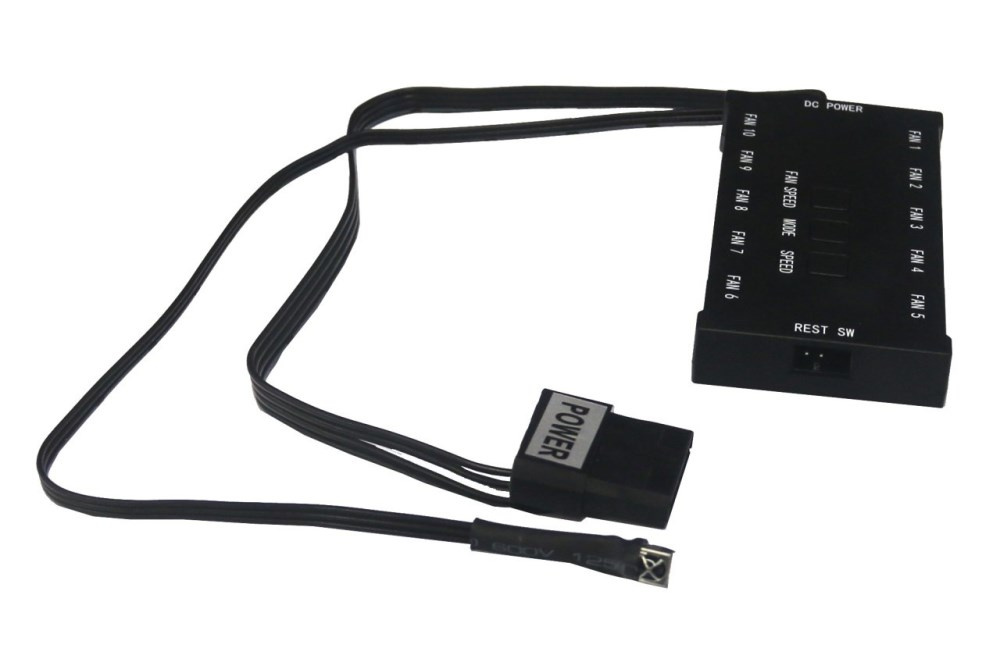 - riadiaca jednotka umožňuje pripojenie až 10ks ventilátorov a ovládanie tlačidlami priamo na jednotke, napájanie jednotky cez konektor "molex" z PC zdroja