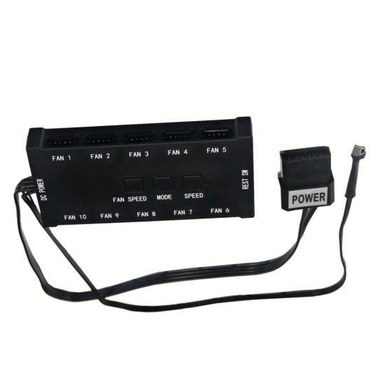- riadiaca jednotka umožňuje pripojenie až 10ks ventilátorov a ovládanie tlačidlom priamo na jednotke, napájanie jednotky cez konektor "molex" z PC zdroja