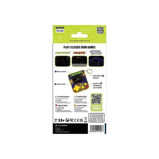 Retro hranie v mikro rozmeroch vďaka kľúčenke Super Micro Centipede Keychain Gamer od HyperMegaTech! Dostatočne malé, aby ste si ju mohli pripnúť ku kľúčom a vziať kamkoľvek, ale aj dostatočne veľké, aby ste si mohli zahrať. Obsahuje tri skvelé hry od Atari: Centipede, Millipede a Crystal Castles. Dvoupalcová obrazovka RGB umožňuje maximálnu hrateľnosť a ovládanie hlasitosti na správnu mieru z nej robí viac než len cetku. Vyžaduje 3 batérie AAA (nie sú súčasťou balenia).