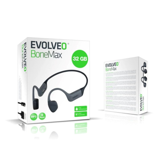 EVOLVEO bezdrátová sluchátka BoneMax MP3 32GB, na lícní kosti, IPX8, šedá